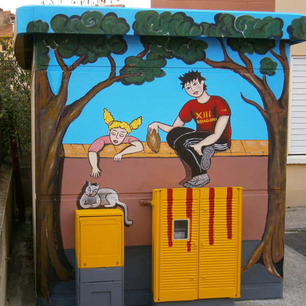 Art Visuel sur transformateur EDF à Trouillas (66) (Mairie)