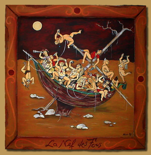 LA NEF DES FOUS III - illustration sur carton - 124 x 122 cm
